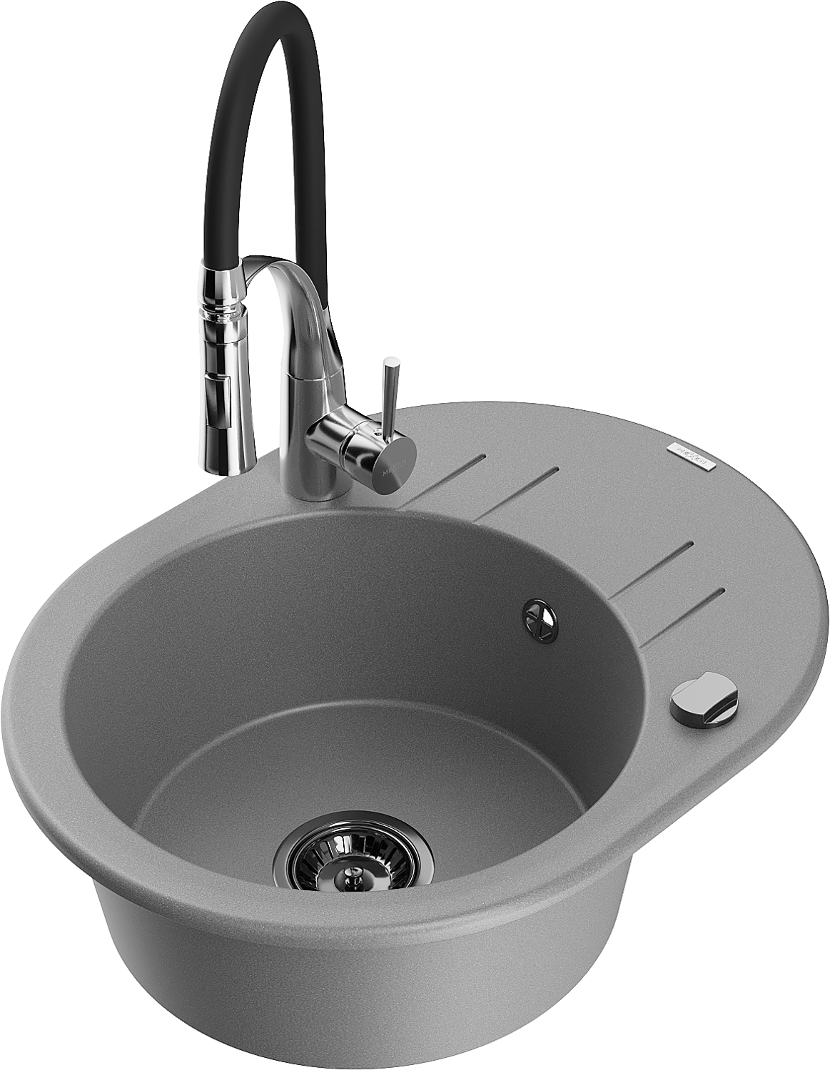 Mexen Kevin 1-bowl granite sink with drainer and Aster kitchen tap, grey - 6517-71-73450-07-B