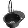 Mexen Kevin granite sink 1-bowl with drainer and Aster kitchen tap, black - 6517-77-73450-07