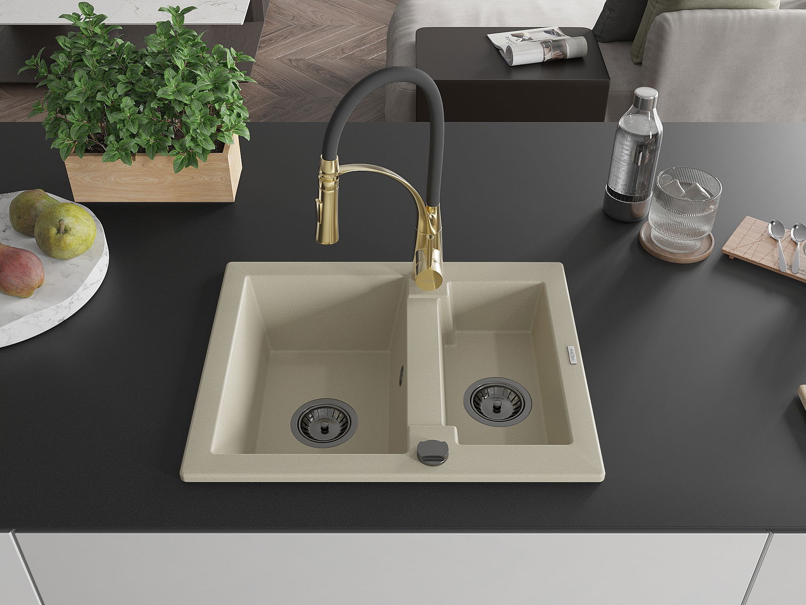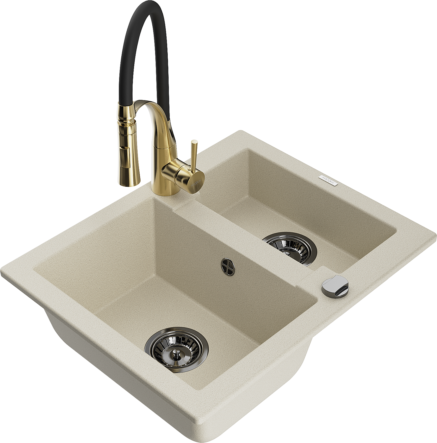 Mexen Carlos 1.5-bowl granite sink with Aster kitchen tap, beige - 6518-69-73450-57-B