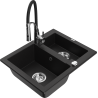 Mexen Carlos 1.5-bowl granite sink with Aster kitchen tap, black speckled - 6518-76-73450-07