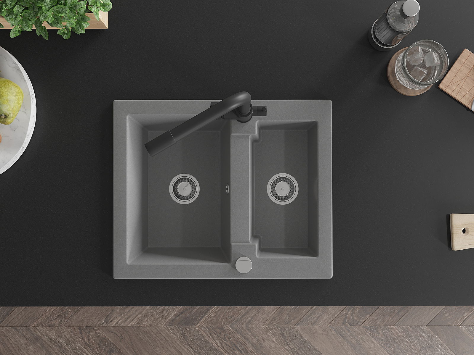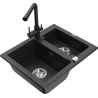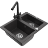 Mexen Carlos granite sink 1.5-bowl with Duero kitchen tap, grey - 6518-71-671600-70