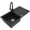 Mexen Leo granite sink 1-bowl with drainer and Elia kitchen tap, black/silver metallic - 6501-73-670101-70