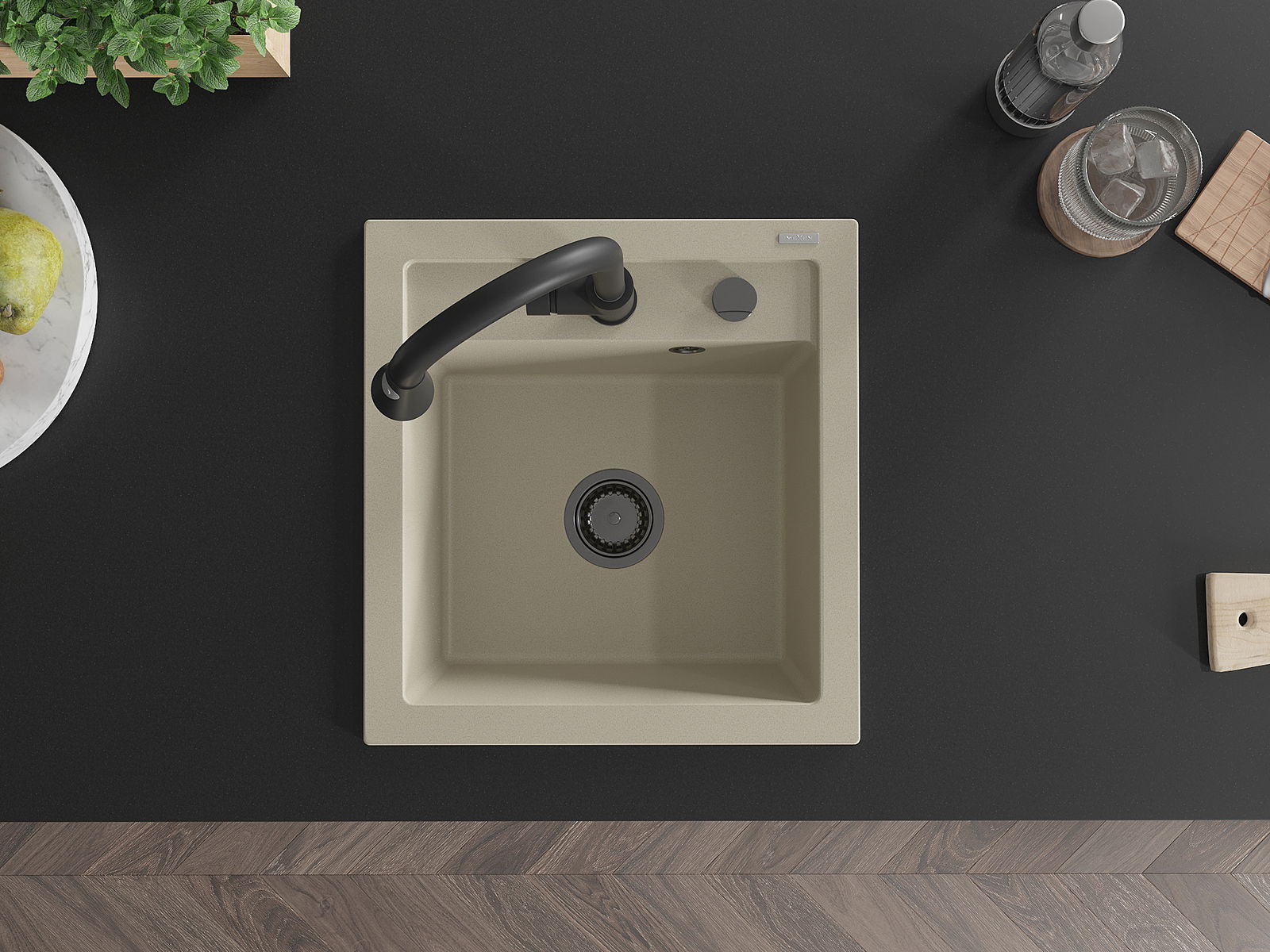 The surface of the sink is resistant to stains and discolouration, making it easy to maintain cleanliness and retain its colour for a long time of use. An aesthetic and practical addition to any kitchen.