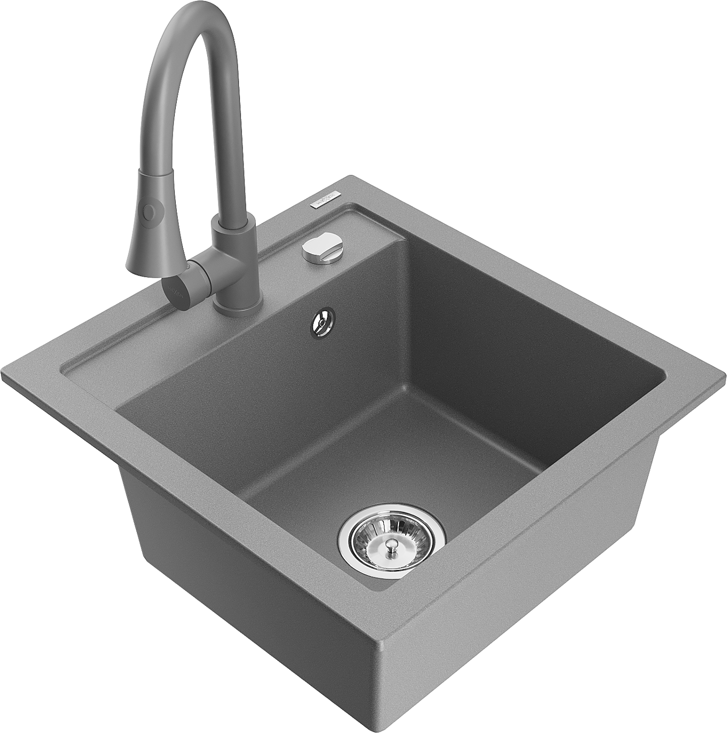 Mexen Vito granite kitchen sink 1-bowl with kitchen tap Elia, grey - 6503-71-670101-71