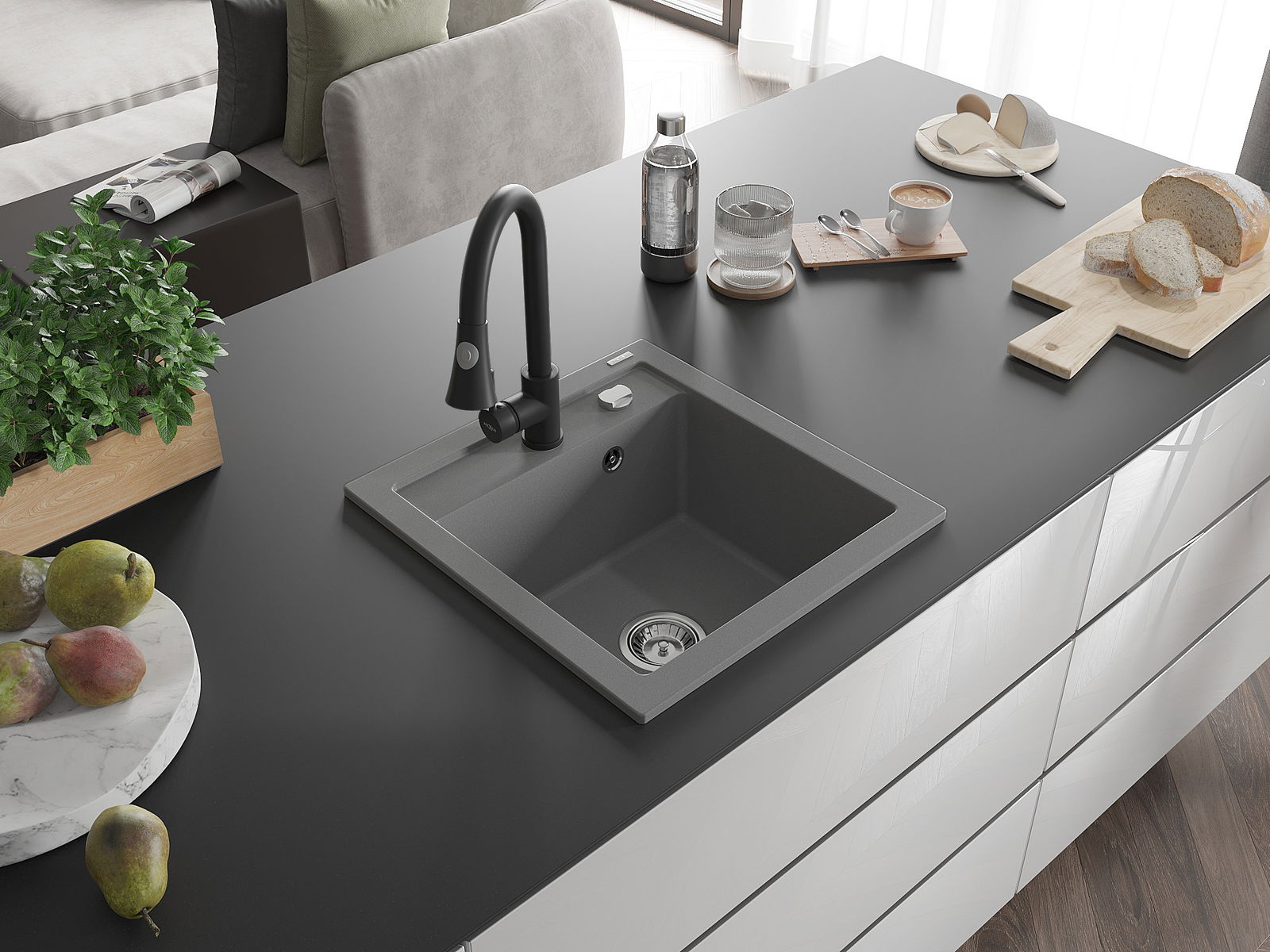 The sink is made from high-quality granite. It serves as an elegant and, above all, practical addition to any kitchen, regardless of its style. The high quality and durability of granite ensure many years of use.