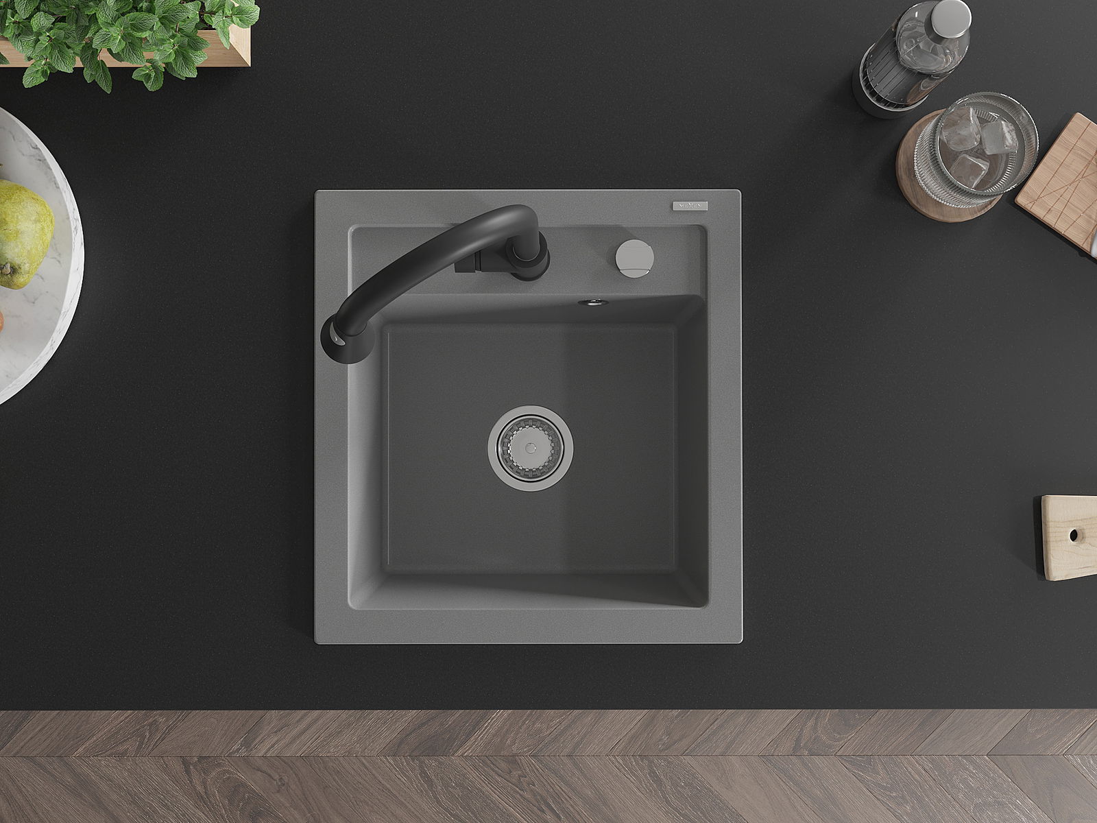 The surface of the sink is resistant to stains and discolouration, making it easy to maintain cleanliness and retain its colour for a long time of use. An aesthetic and practical addition to any kitchen.