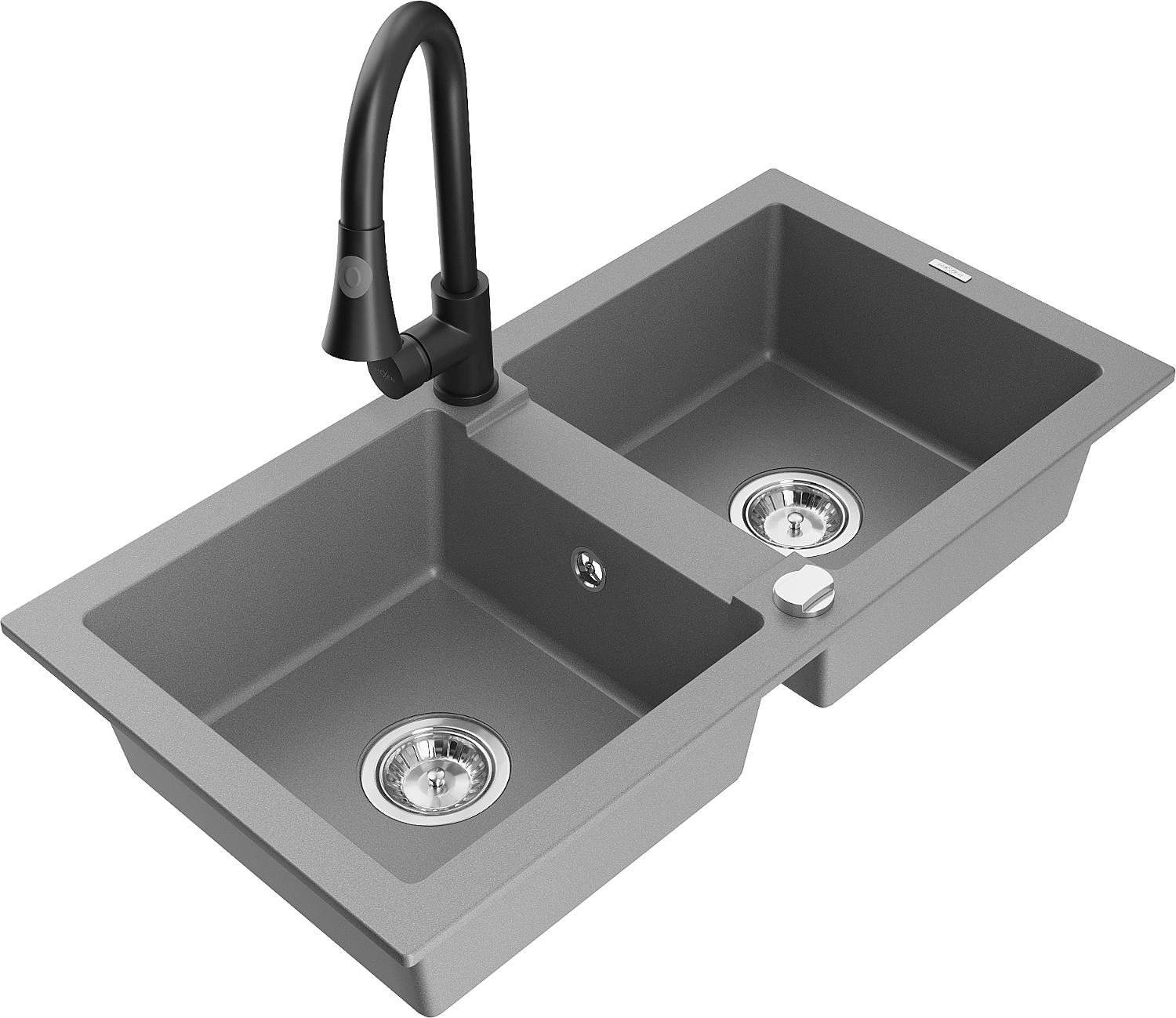 Mexen Mario 2-bowl granite sink with Elia kitchen tap, grey - 6504-71-670101-70