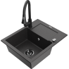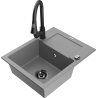 Mexen Enzo 1-bowl granite kitchen sink with drainer and Elia kitchen mixer, black/silver metallic - 6506-73-670101-70-B