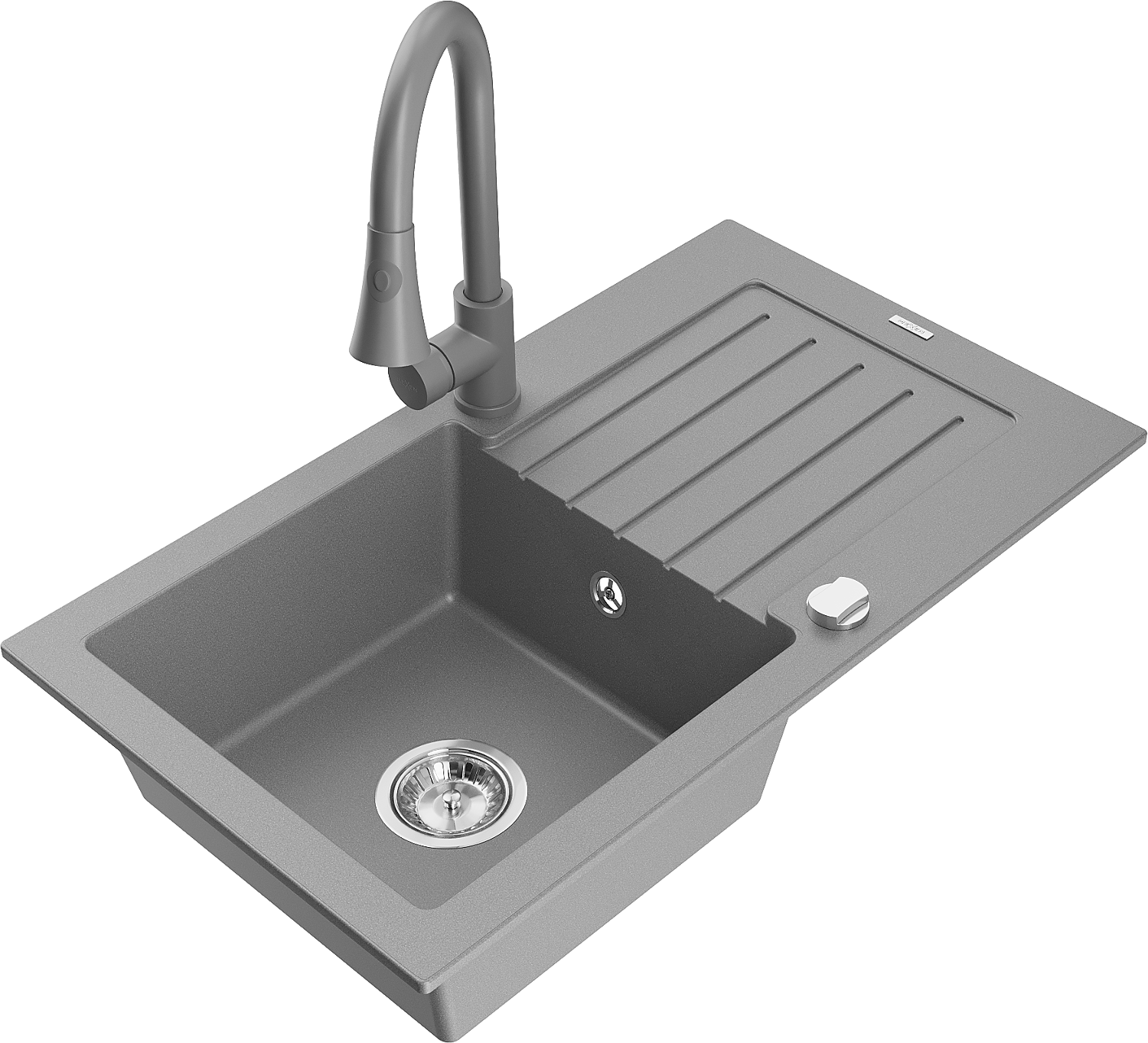Mexen Pablo granite sink 1-bowl with drainer and Elia kitchen tap, grey - 6510-71-670101-71
