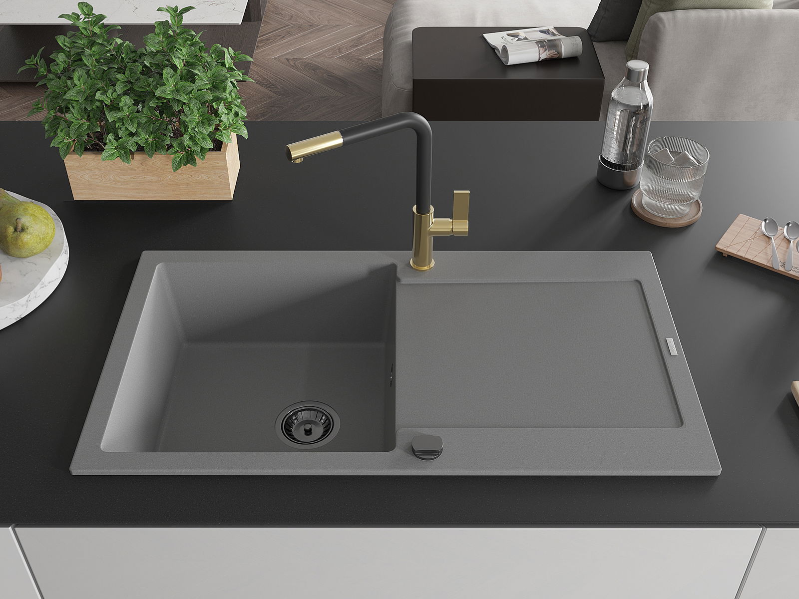 The sink is made from high-quality granite. It serves as an elegant and, above all, practical addition to any kitchen, regardless of its style. The high quality and durability of granite ensure many years of use.