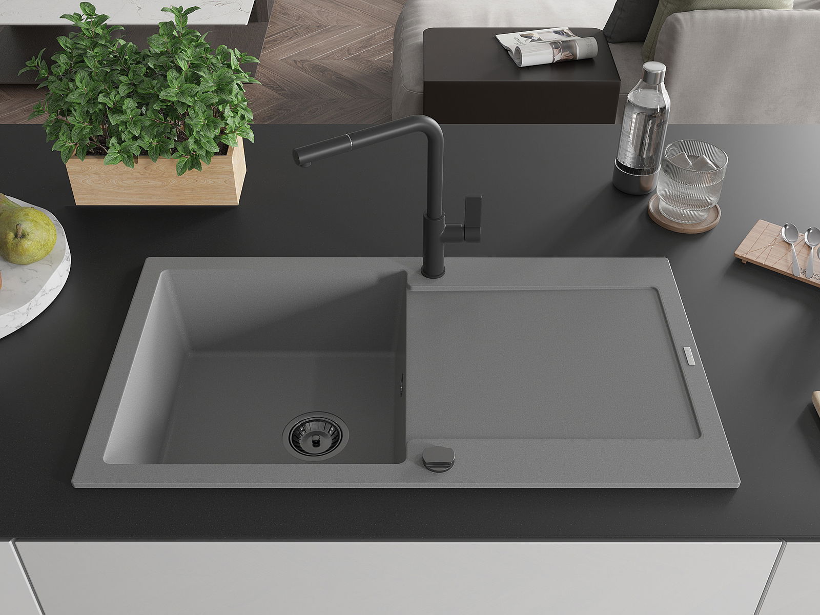 The sink is made from high-quality granite. It serves as an elegant and, above all, practical addition to any kitchen, regardless of its style. The high quality and durability of granite ensure many years of use.