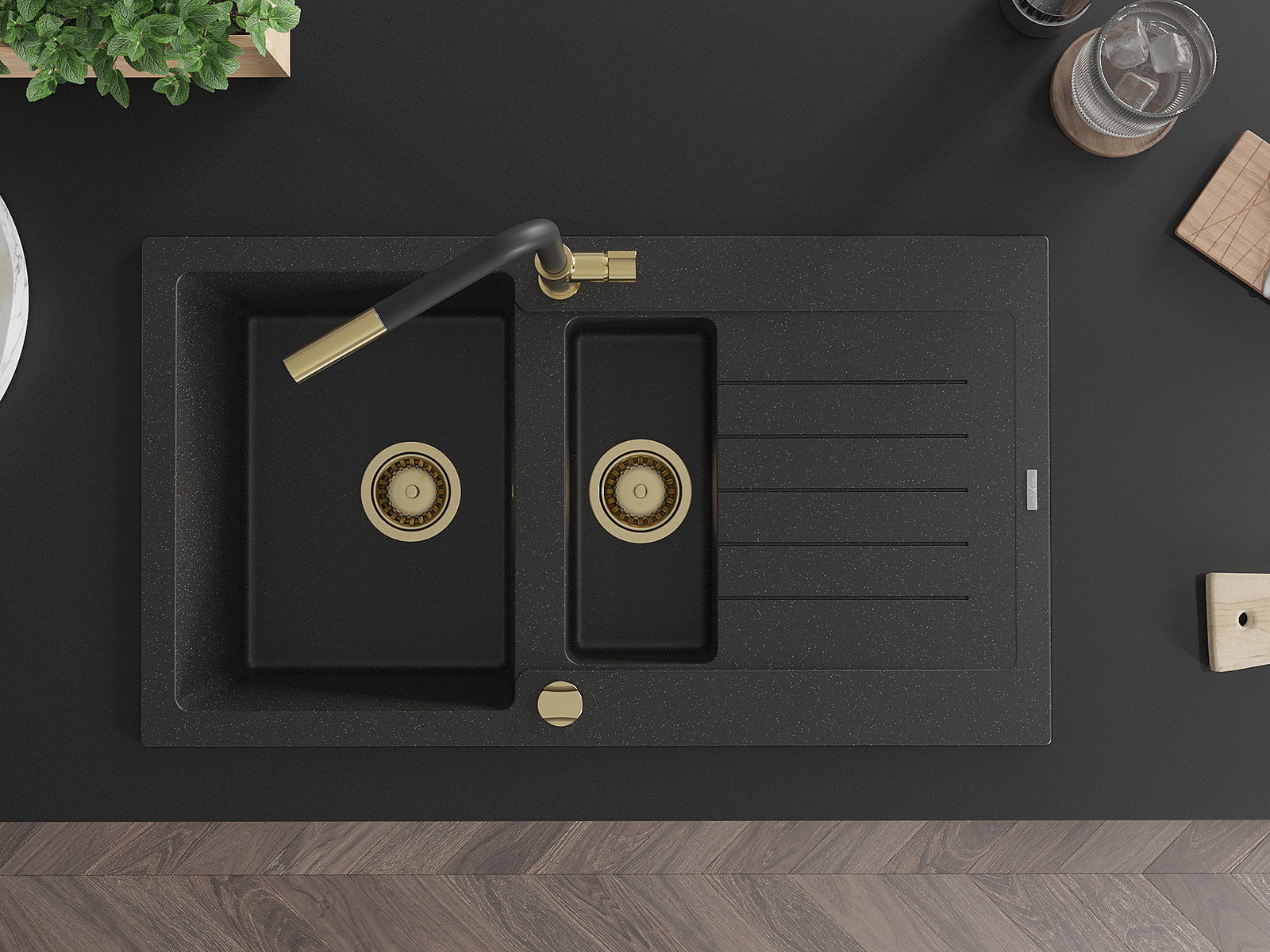 Choosing a sink with a draining board is a practical solution that allows you to set aside washed dishes or vegetables and fruits. The draining board makes daily cooking easier and helps maintain order in the kitchen.