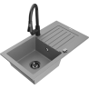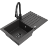 Mexen Pablo granite sink 1-bowl with drainer and Elia kitchen tap, black - 6510-77-670101-70-B