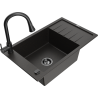 Mexen Elias single-bowl granite sink with drainer and Elia kitchen tap, black - 6511-77-670101-70-B