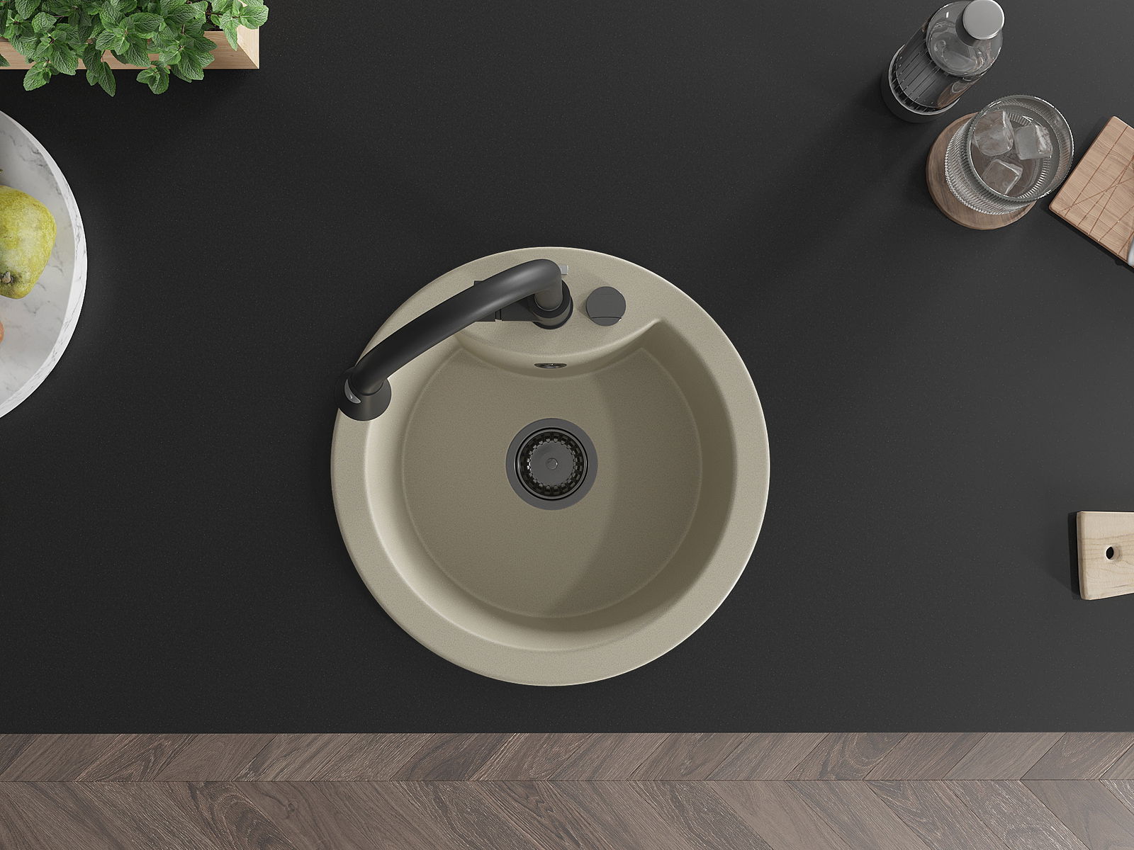 The surface of the sink is resistant to stains and discolouration, making it easy to maintain cleanliness and retain its colour for a long time of use. An aesthetic and practical addition to any kitchen.