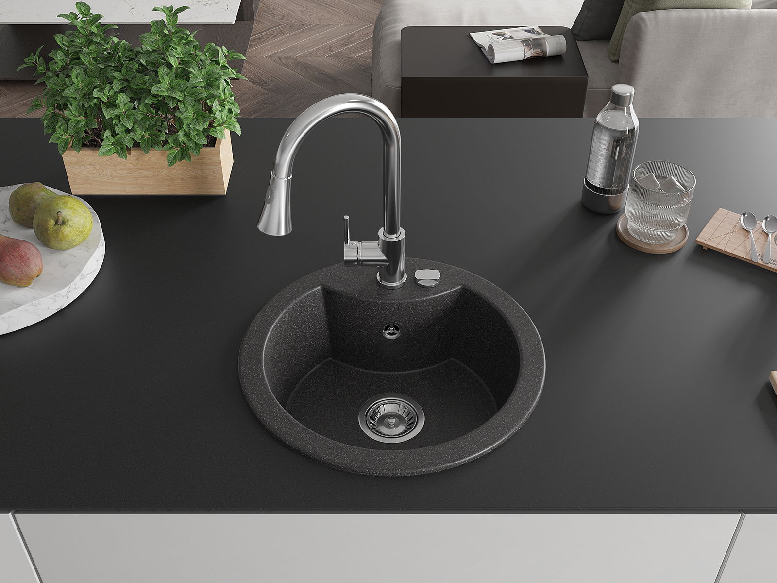 The sink is made from high-quality granite. It serves as an elegant and, above all, practical addition to any kitchen, regardless of its style. The high quality and durability of granite ensure many years of use.