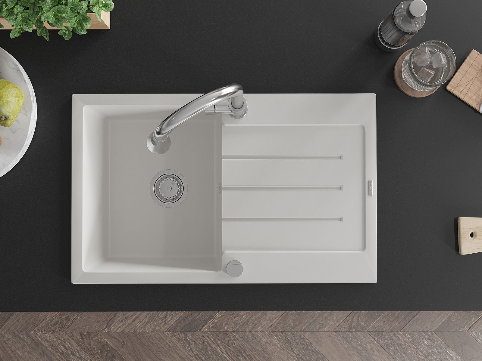 The surface of the sink is resistant to stains and discolouration, making it easy to maintain cleanliness and retain its colour for a long time of use. An aesthetic and practical addition to any kitchen.