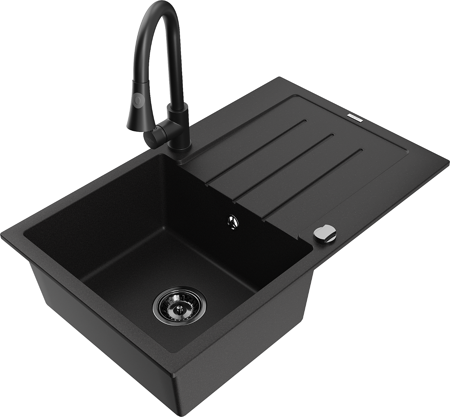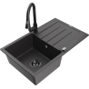 Mexen Bruno 1-bowl granite sink with drainer and Elia kitchen tap, black - 6513-77-670101-70-B