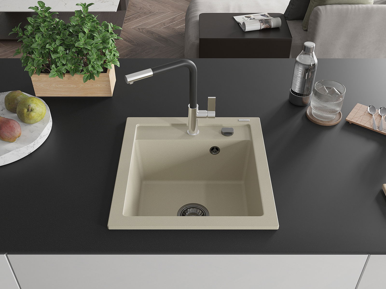 The surface of the sink is resistant to stains and discolouration, making it easy to maintain cleanliness and retain its colour for a long time of use. An aesthetic and practical addition to any kitchen.