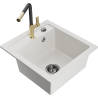 The surface of the sink is resistant to stains and discolouration, making it easy to maintain cleanliness and retain its colour for a long time of use. An aesthetic and practical addition to any kitchen.