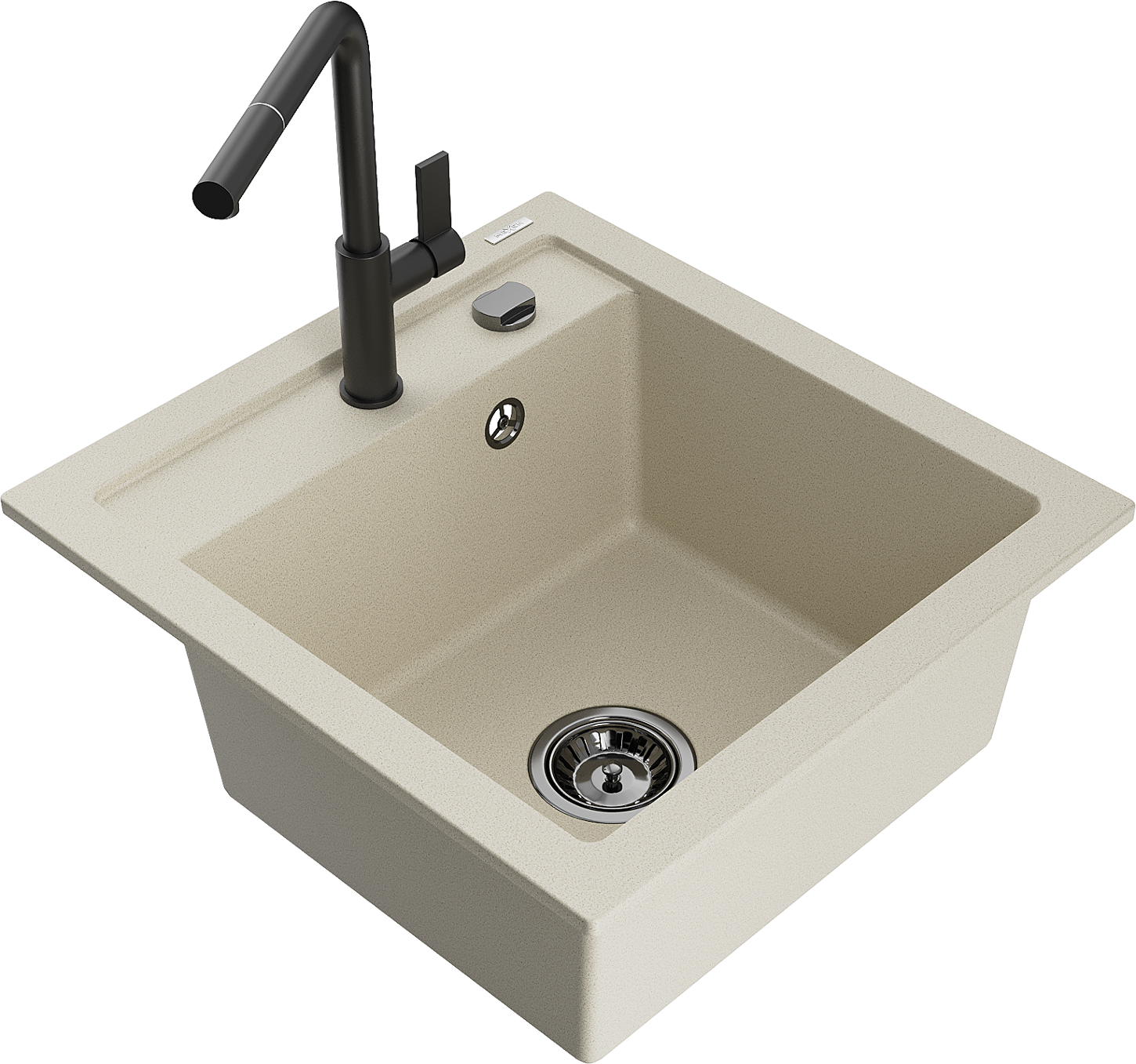 The surface of the sink is resistant to stains and discolouration, making it easy to maintain cleanliness and retain its colour for a long time of use. An aesthetic and practical addition to any kitchen.
