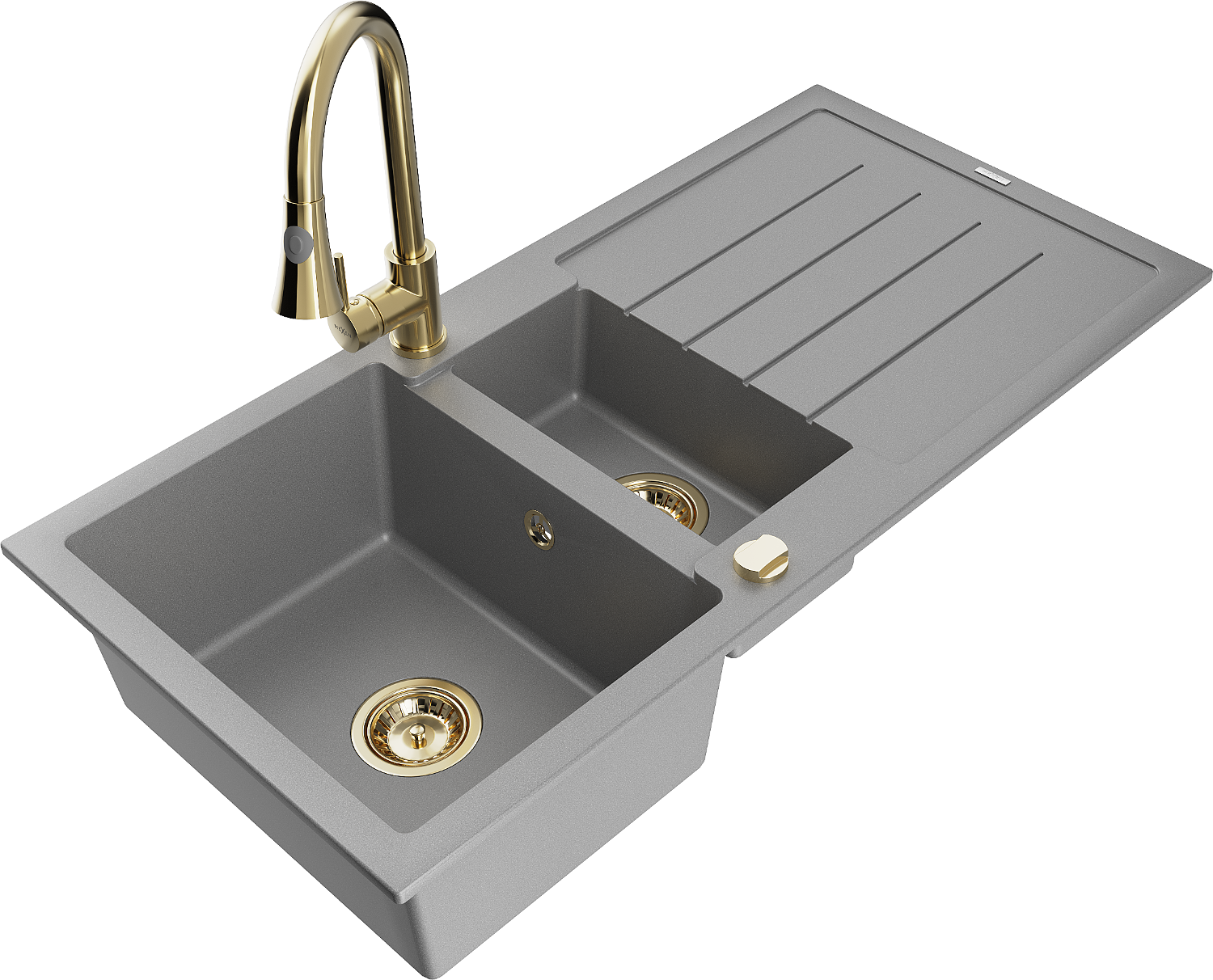 Mexen Andres granite sink 1.5-bowl with drainer and Elia kitchen tap, grey - 6515-71-670101-50
