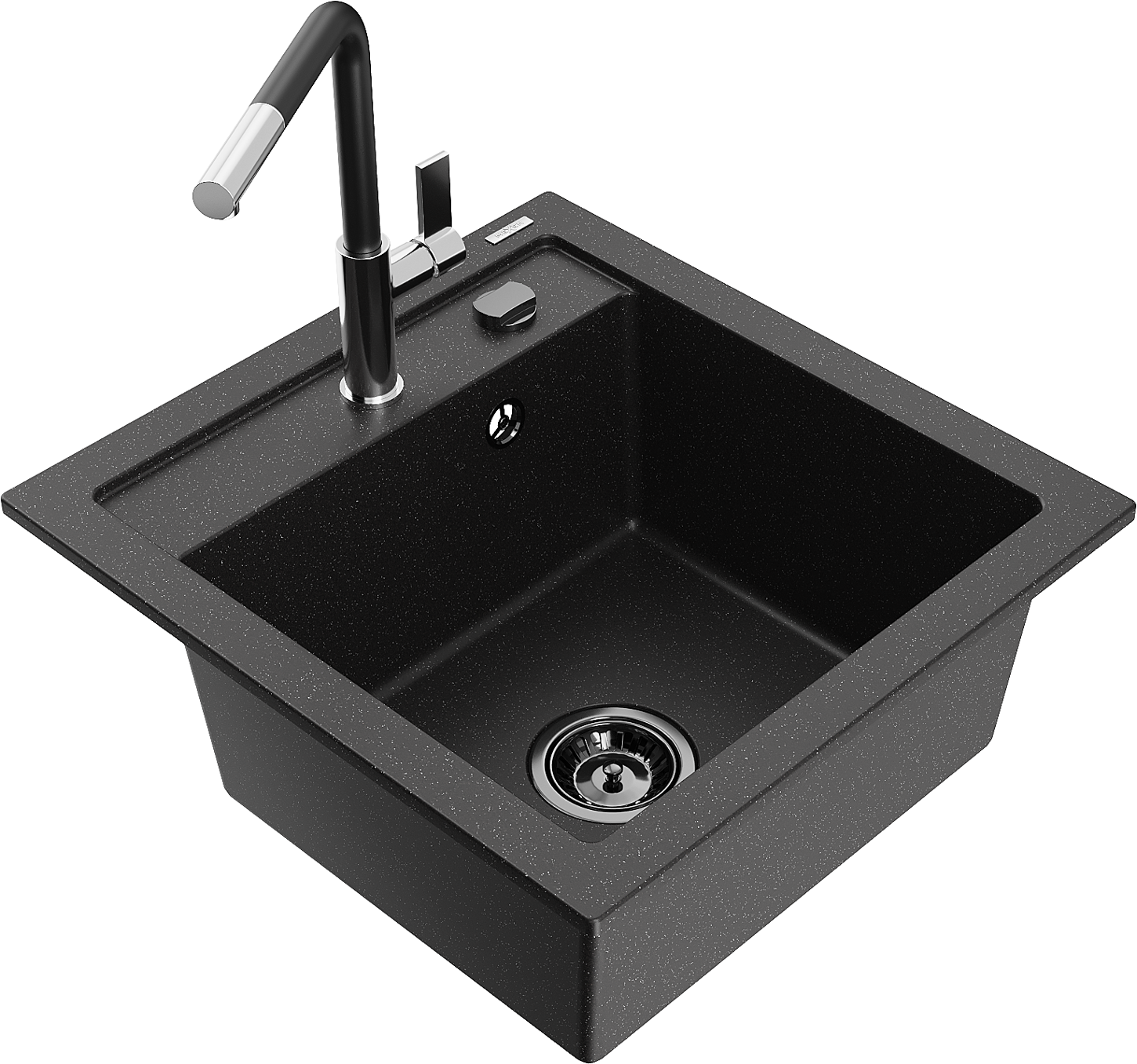 Mexen Vito 1-Bowl Granite Sink with Flora Kitchen Faucet, Black/Silver Metallic - 6503-73-670401-07-B
