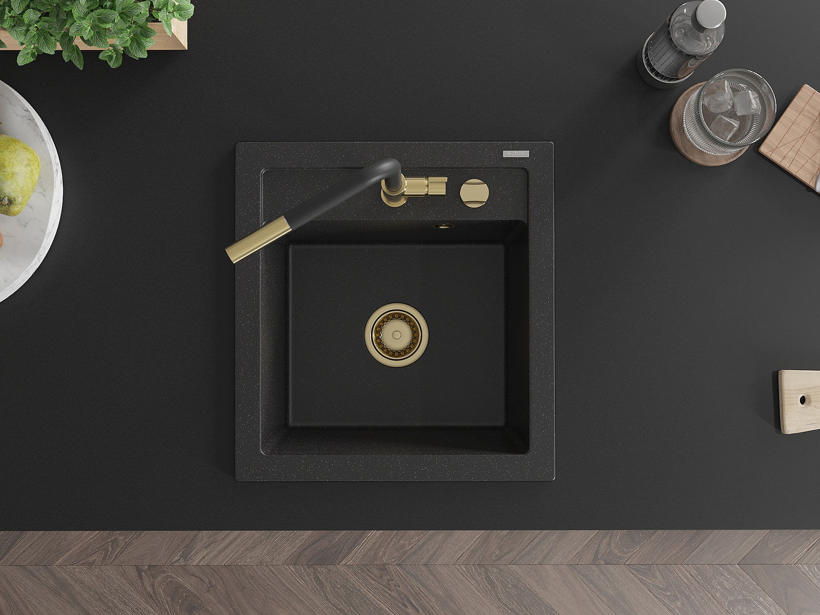 The sink has a pre-drilled 35 mm diameter hole for self-punching. It can be used, among other things, for installing a liquid dispenser, which will eliminate the presence of plastic bottles in the kitchen and give it an elegant finish.