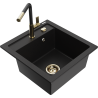 Mexen Vito 1-bowl granite kitchen sink with Flora kitchen tap, black flecked - 6503-76-670401-57-G