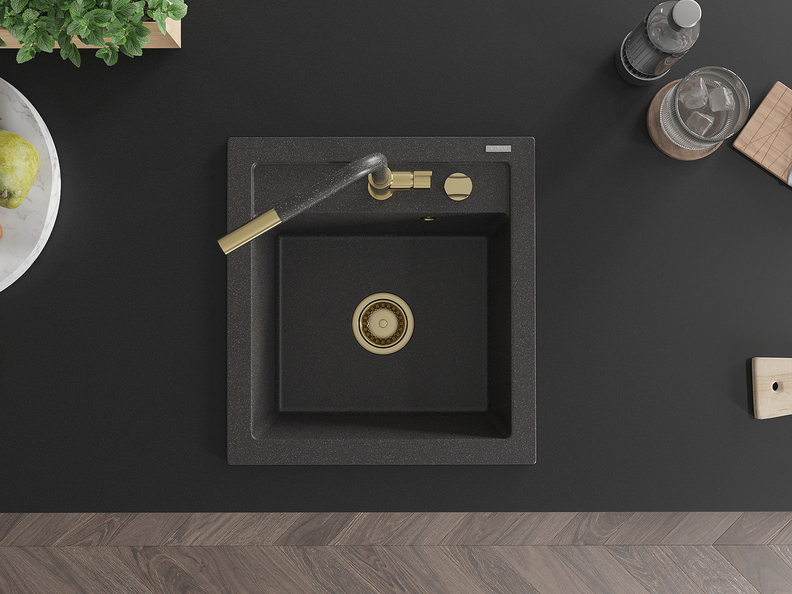 The sink has a pre-drilled 35 mm diameter hole for self-punching. It can be used, among other things, for installing a liquid dispenser, which will eliminate the presence of plastic bottles in the kitchen and give it an elegant finish.