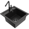 Mexen Vito granite kitchen sink 1-bowl with Flora kitchen tap, black - 6503-77-670401-70-B