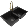 Mexen Tomas granite sink double-bowl with Elia kitchen tap, black/golden metallic - 6516-75-670101-50-B