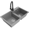 Mexen Tomas granite sink 2-bowl with Elia kitchen tap, black - 6516-77-670101-70