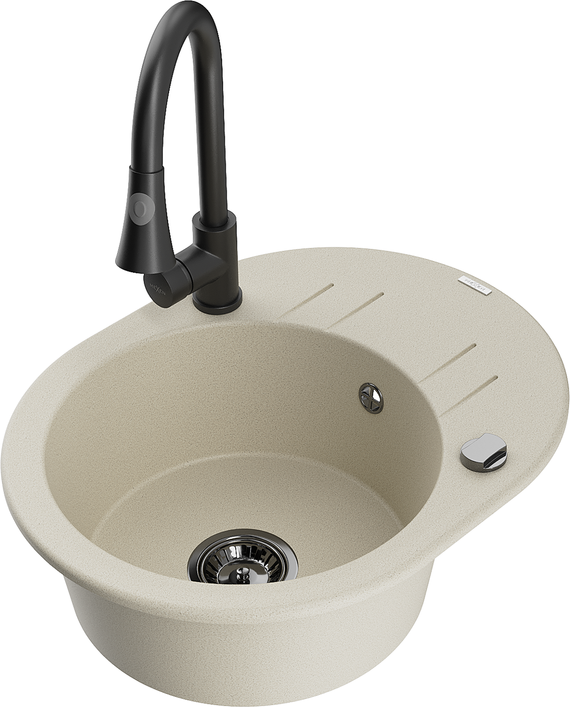 Mexen Kevin 1-bowl granite sink with drainer and Elia kitchen tap, beige - 6517-69-670101-70