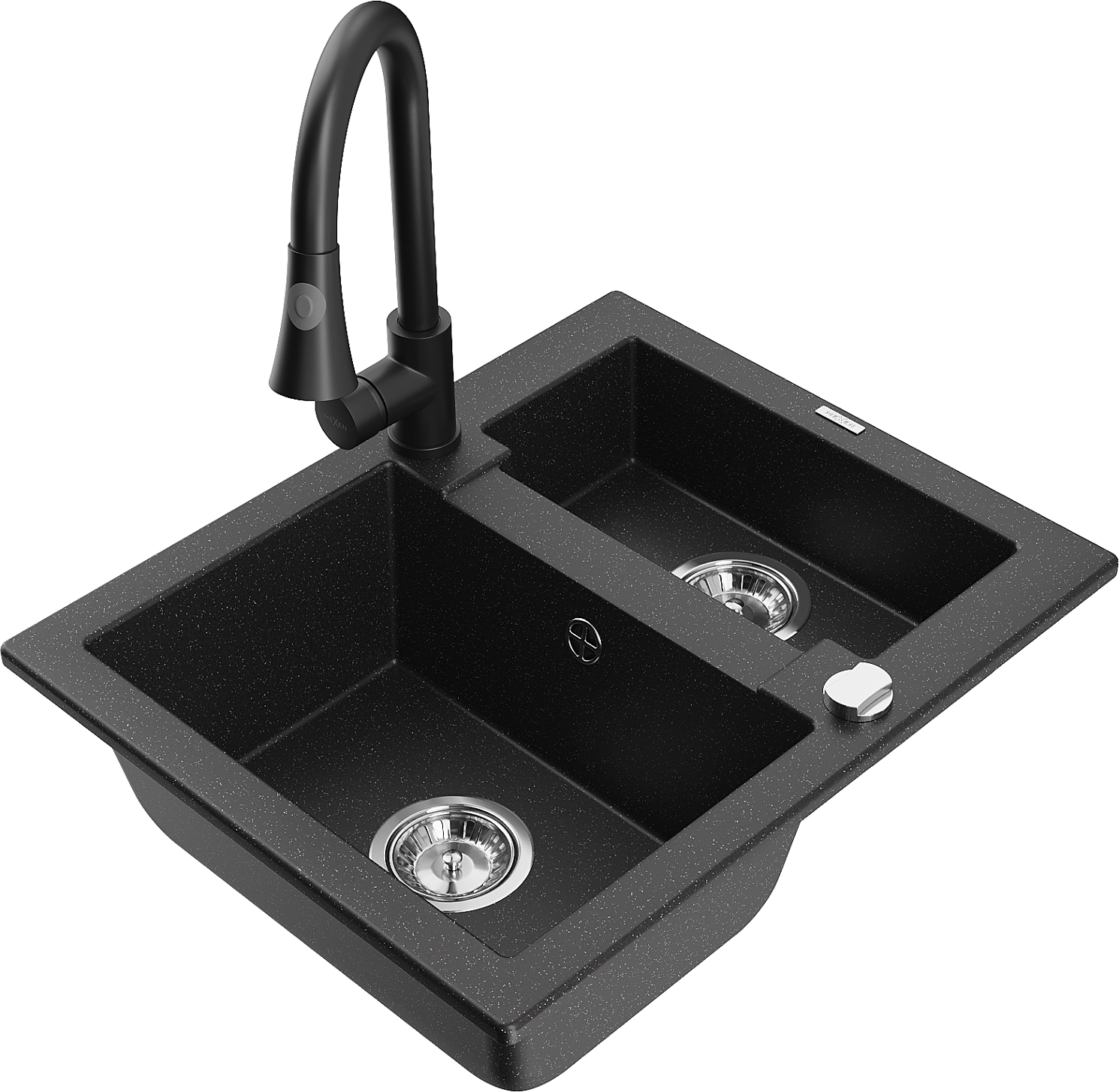 Mexen Carlos 1.5-bowl granite sink with Elia kitchen tap, black/silver metallic - 6518-73-670101-70