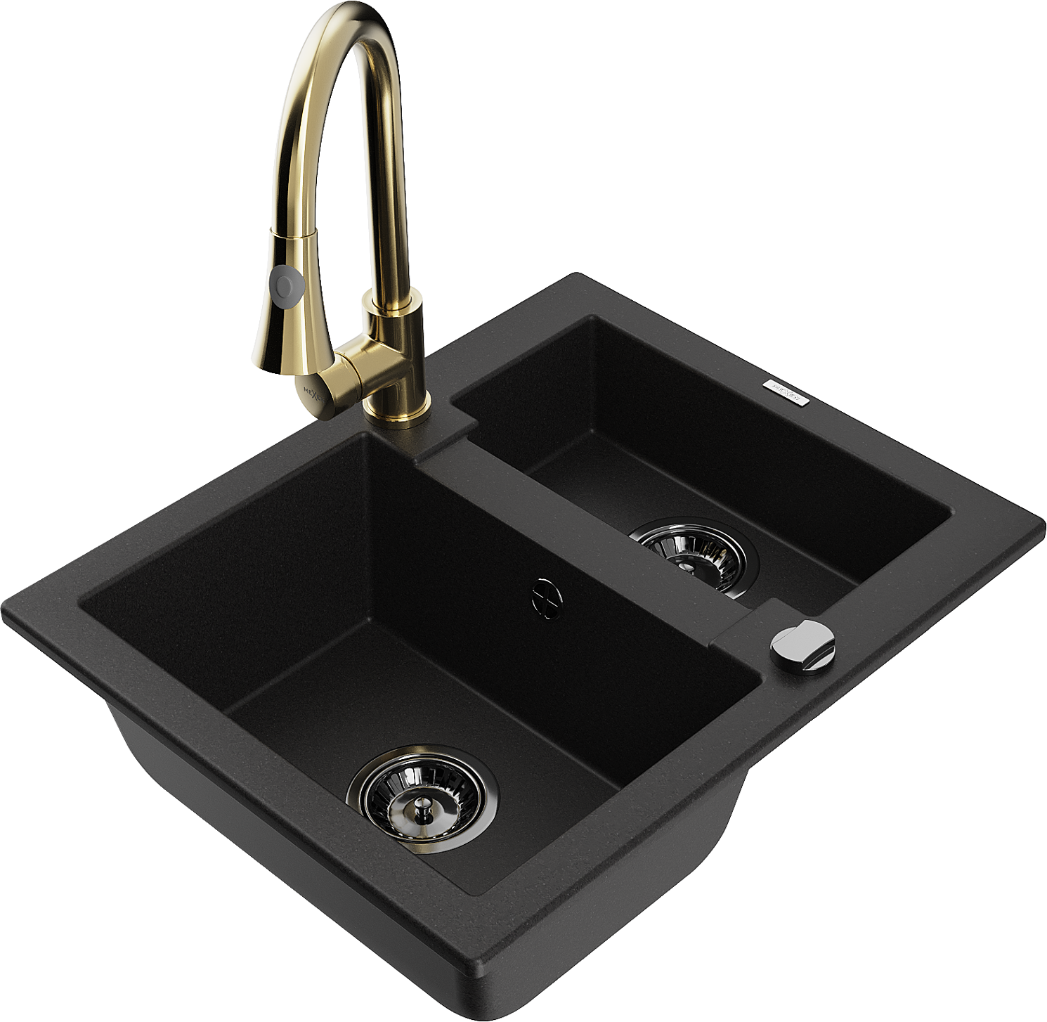 Mexen Carlos granite sink 1.5-bowl with Elia kitchen tap, black - 6518-77-670101-50-B