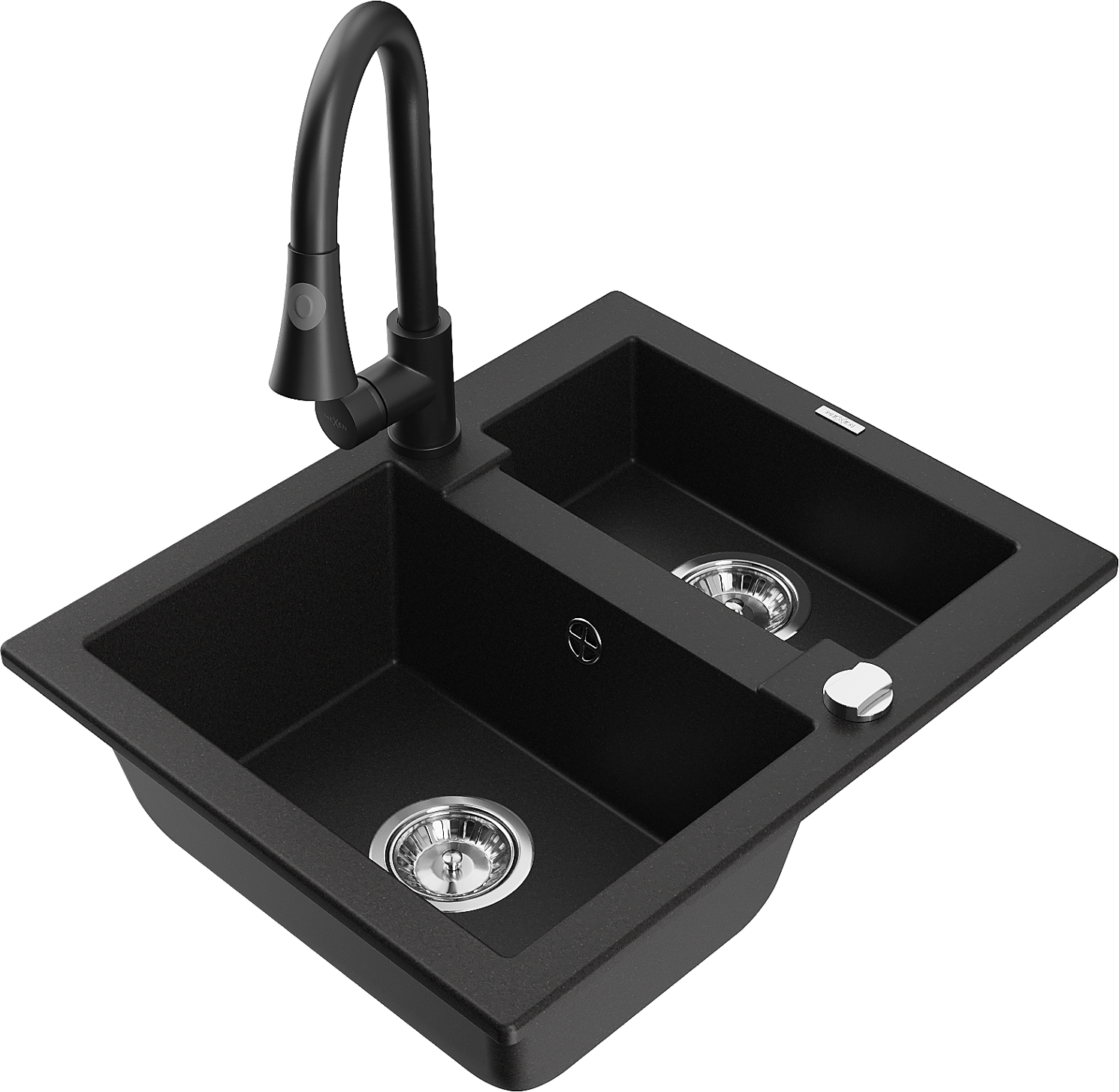 Mexen Carlos granite sink 1.5-bowl with Elia kitchen tap, black - 6518-77-670101-70