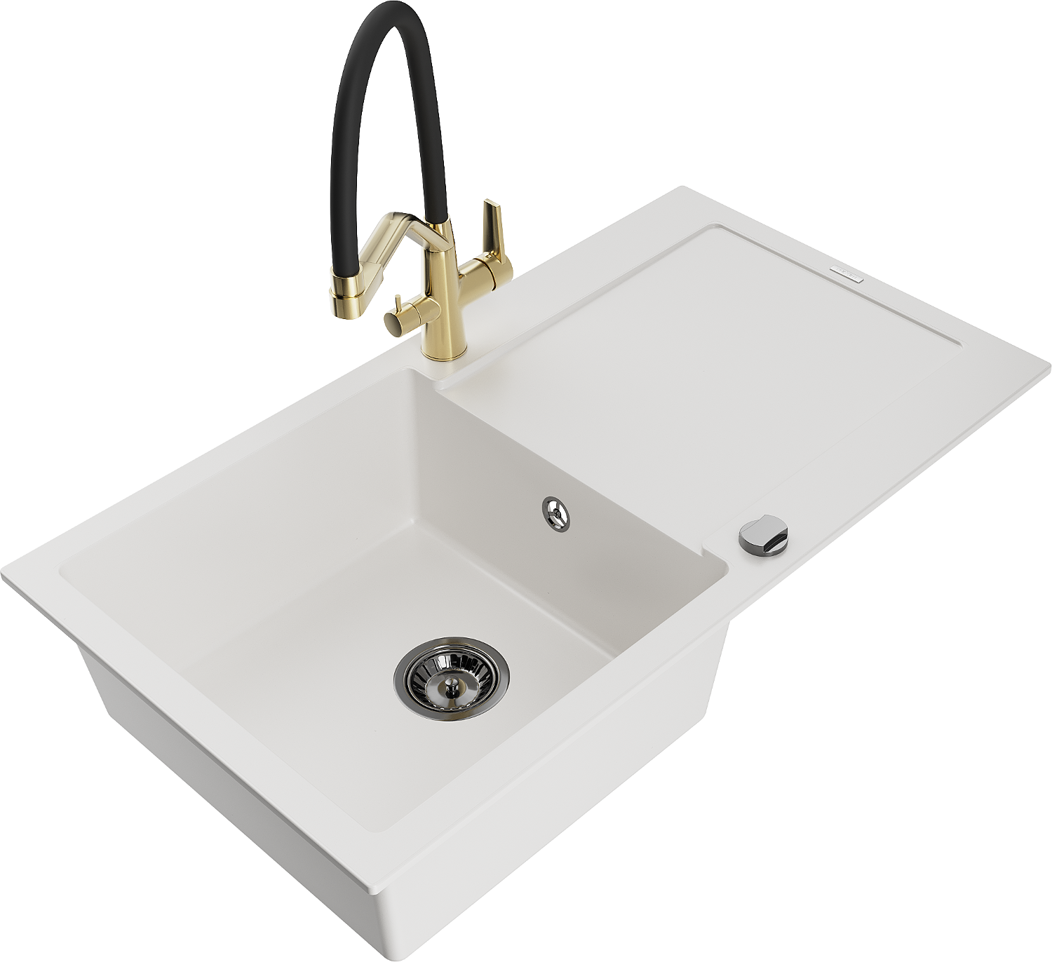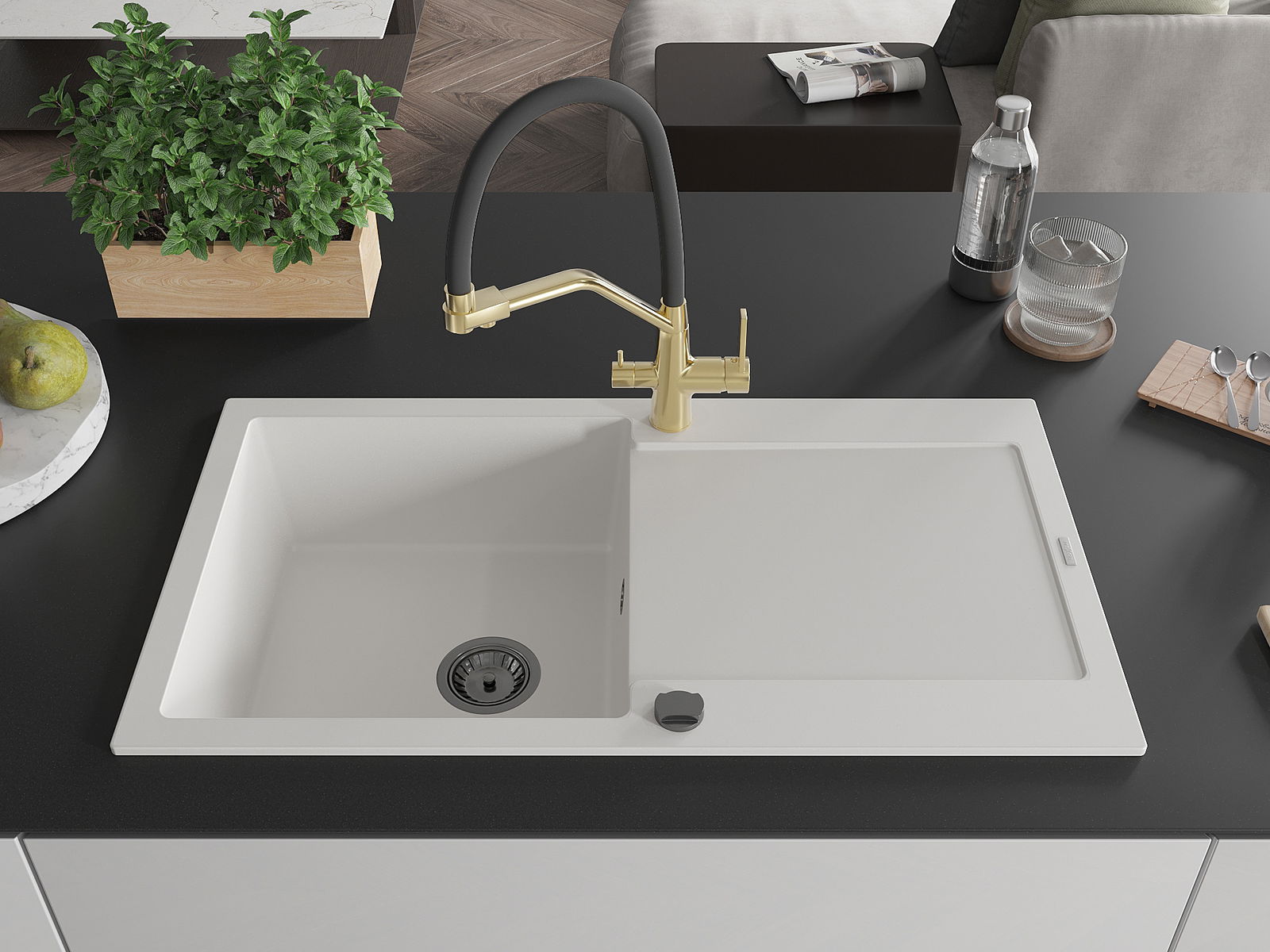 Choosing a sink with a draining board is a practical solution that allows you to set aside washed dishes or vegetables and fruits. The draining board makes daily cooking easier and helps maintain order in the kitchen.