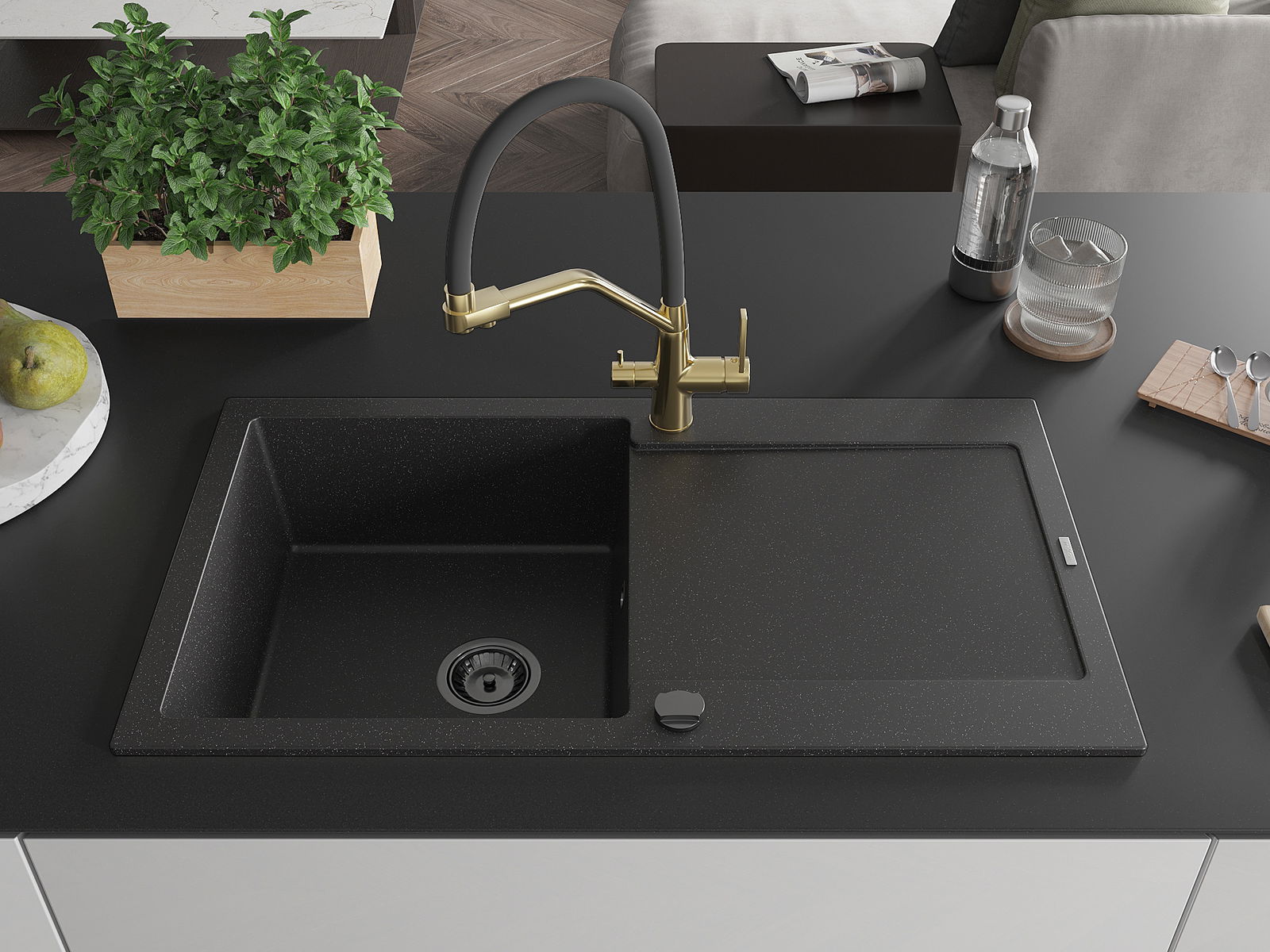 The sink is made from high-quality granite. It serves as an elegant and, above all, practical addition to any kitchen, regardless of its style. The high quality and durability of granite ensure many years of use.