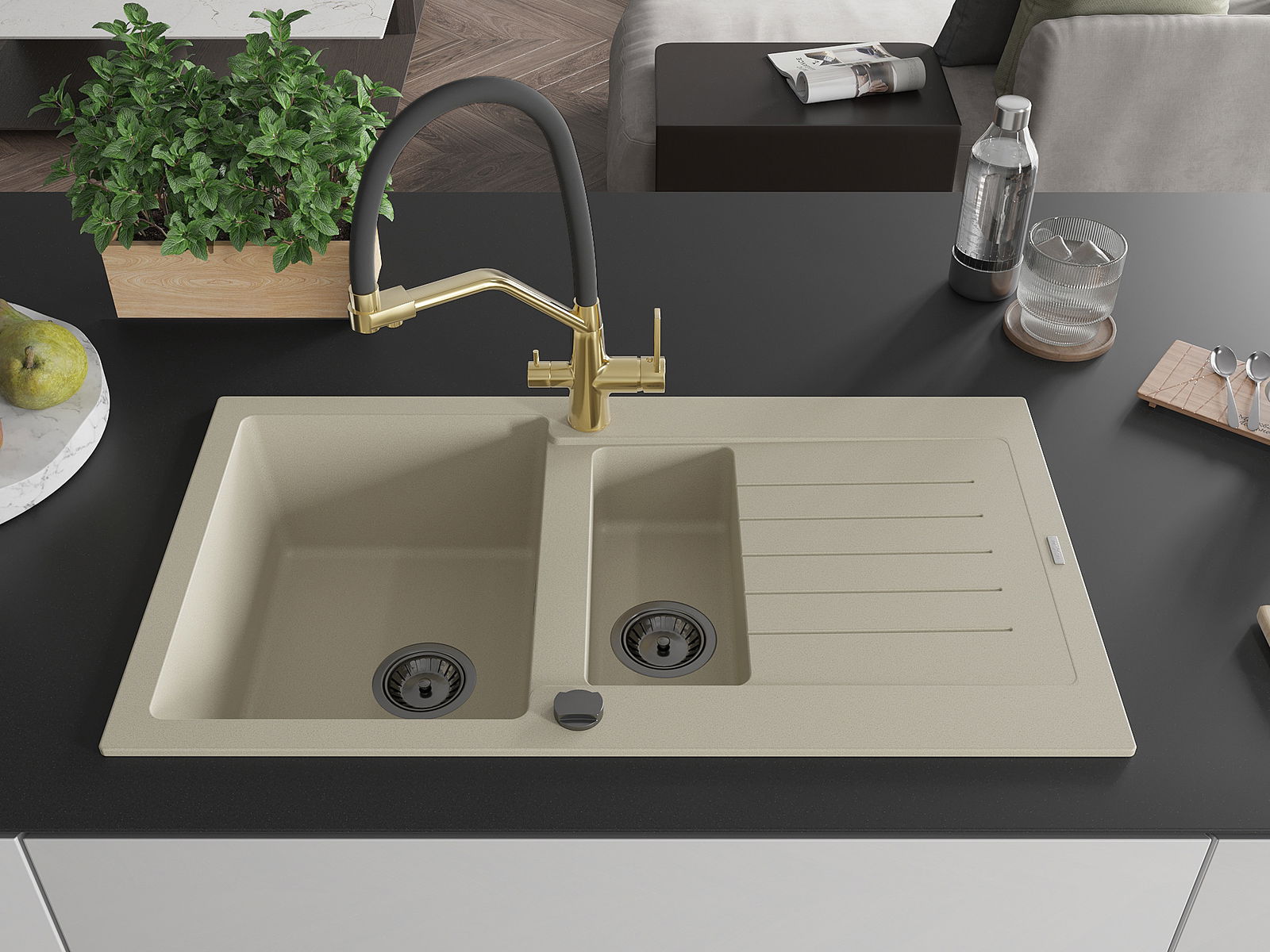 The sink is made from high-quality granite. It serves as an elegant and, above all, practical addition to any kitchen, regardless of its style. The high quality and durability of granite ensure many years of use.