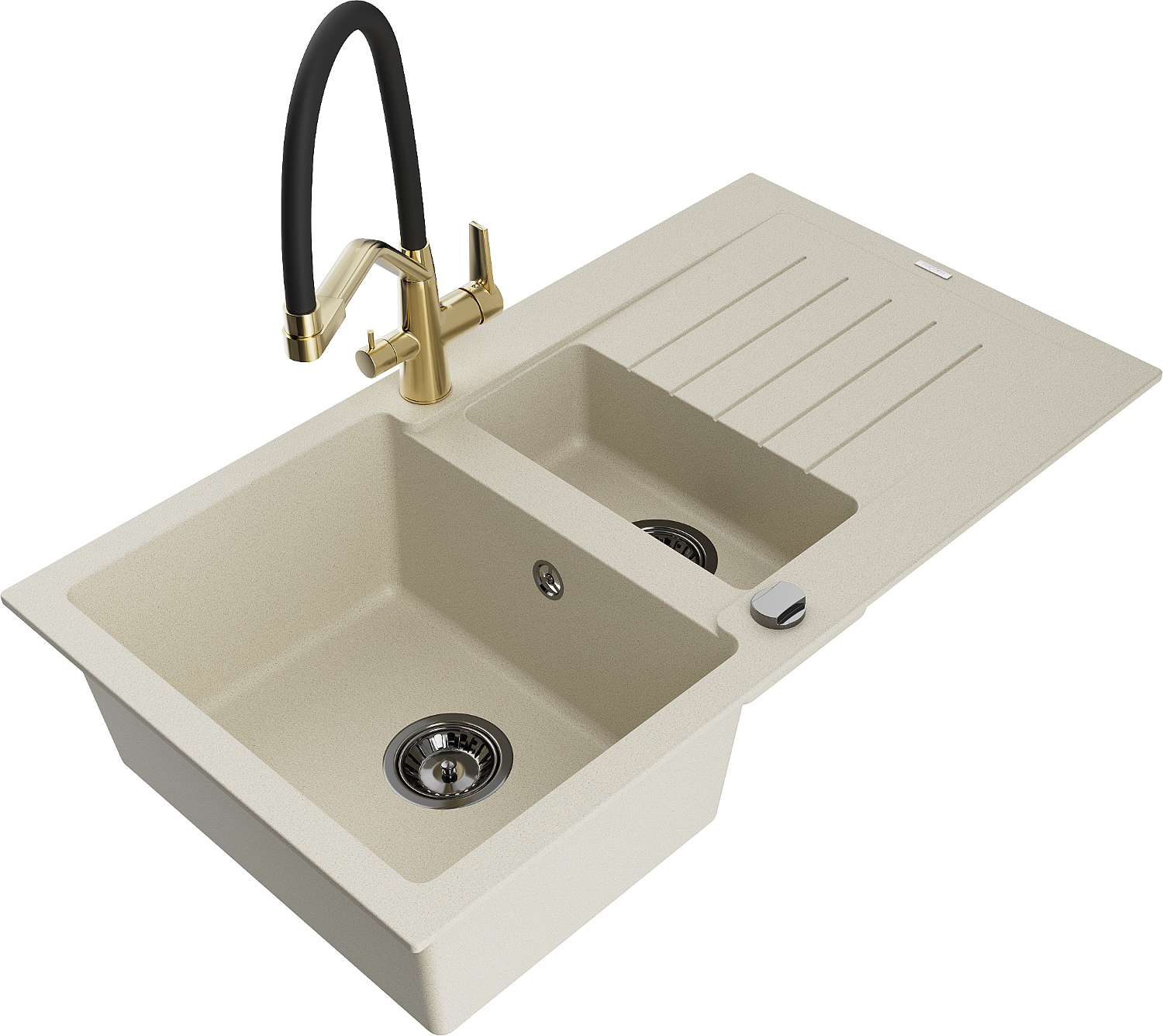 Mexen Matias 1.5-Bowl Granite Sink with Drainer and Duo Kitchen Tap, Beige - 6502-69-671701-57-B