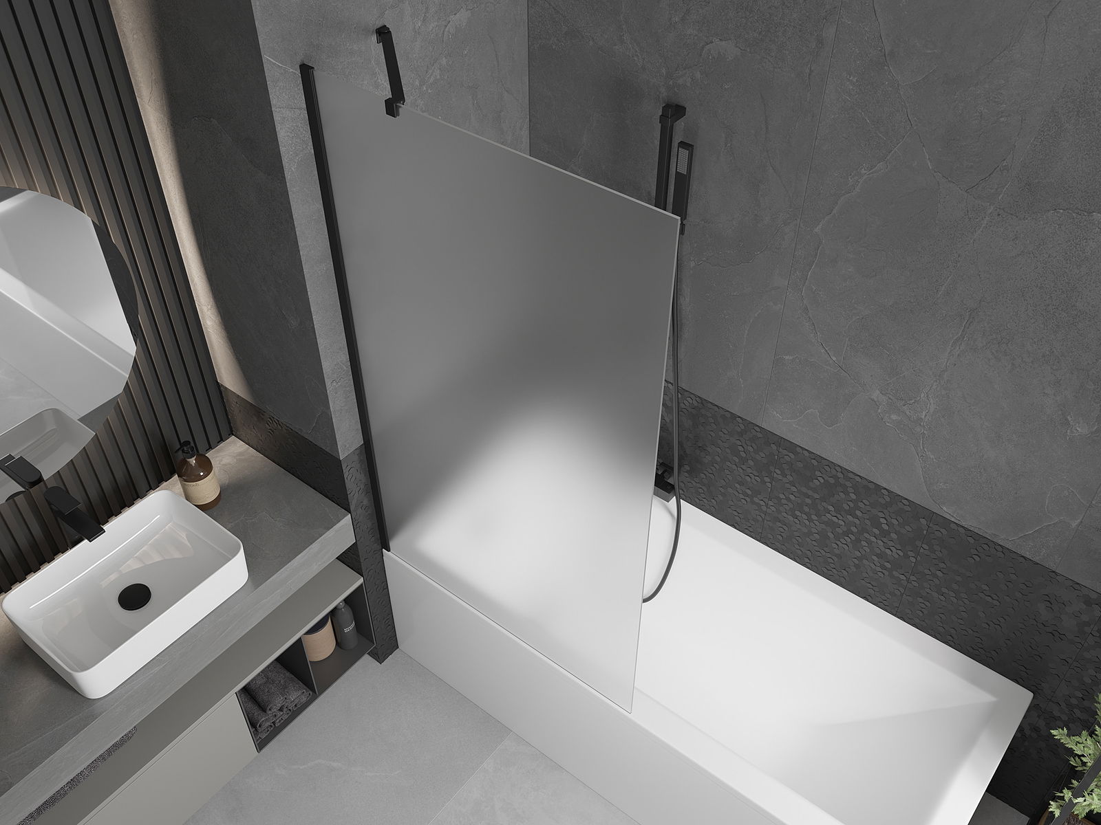 Effective protection against water spilling during bathing. The screen has seals that perfectly fit the glass surface and the edge of the bathtub. A functional solution ensuring safety and easy maintenance of cleanliness.