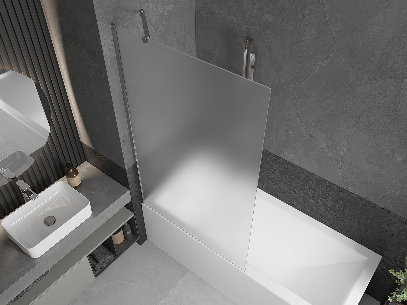 Effective protection against water spilling during bathing. The screen has seals that perfectly fit the glass surface and the edge of the bathtub. A functional solution ensuring safety and easy maintenance of cleanliness.