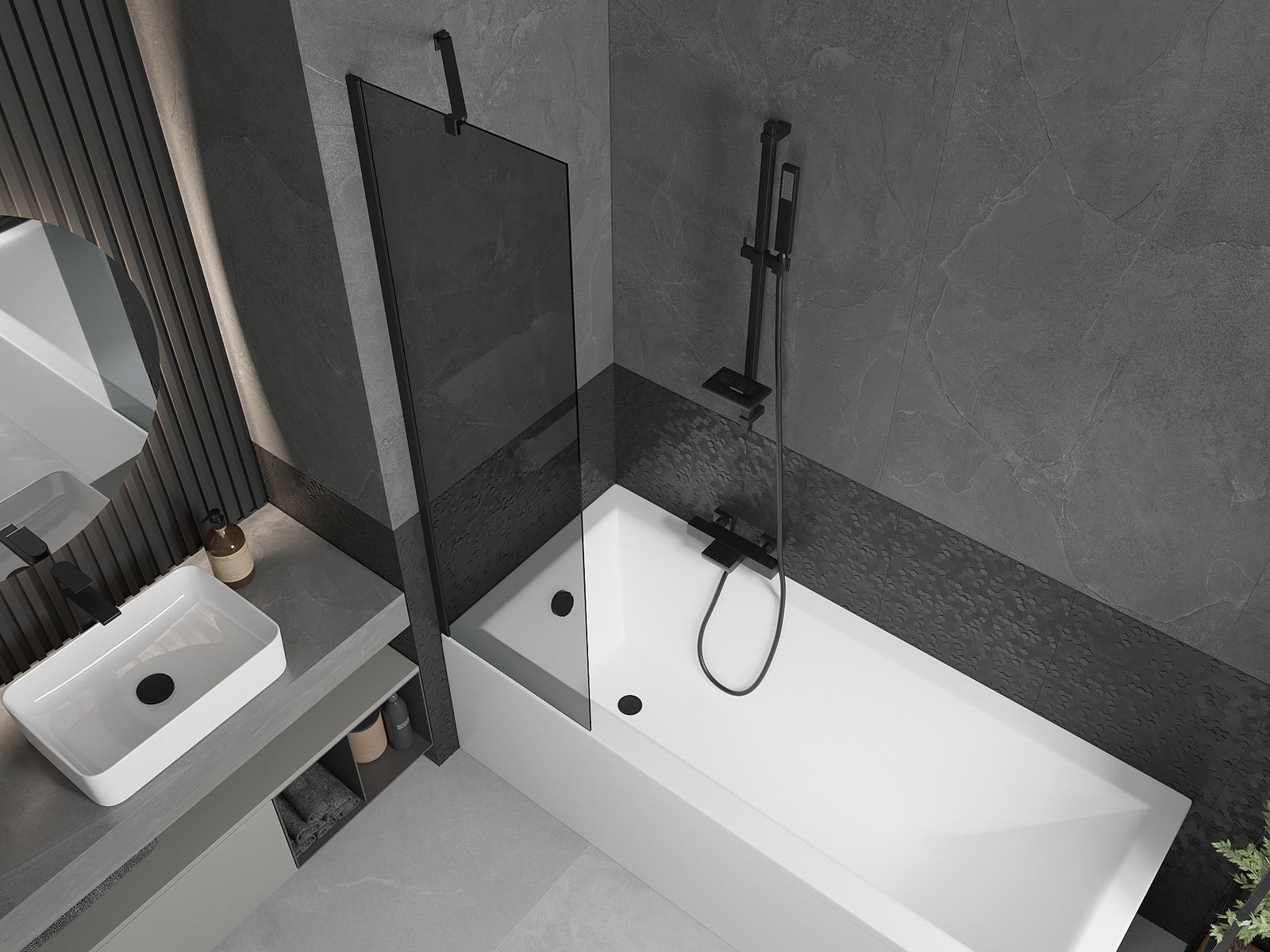 Effective protection against water spilling during bathing. The screen has seals that perfectly fit the glass surface and the edge of the bathtub. A functional solution ensuring safety and easy maintenance of cleanliness.