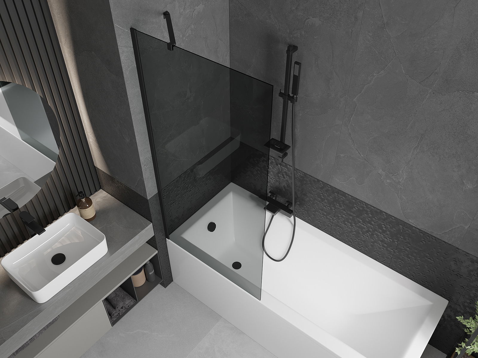 Effective protection against water spilling during bathing. The screen has seals that perfectly fit the glass surface and the edge of the bathtub. A functional solution ensuring safety and easy maintenance of cleanliness.