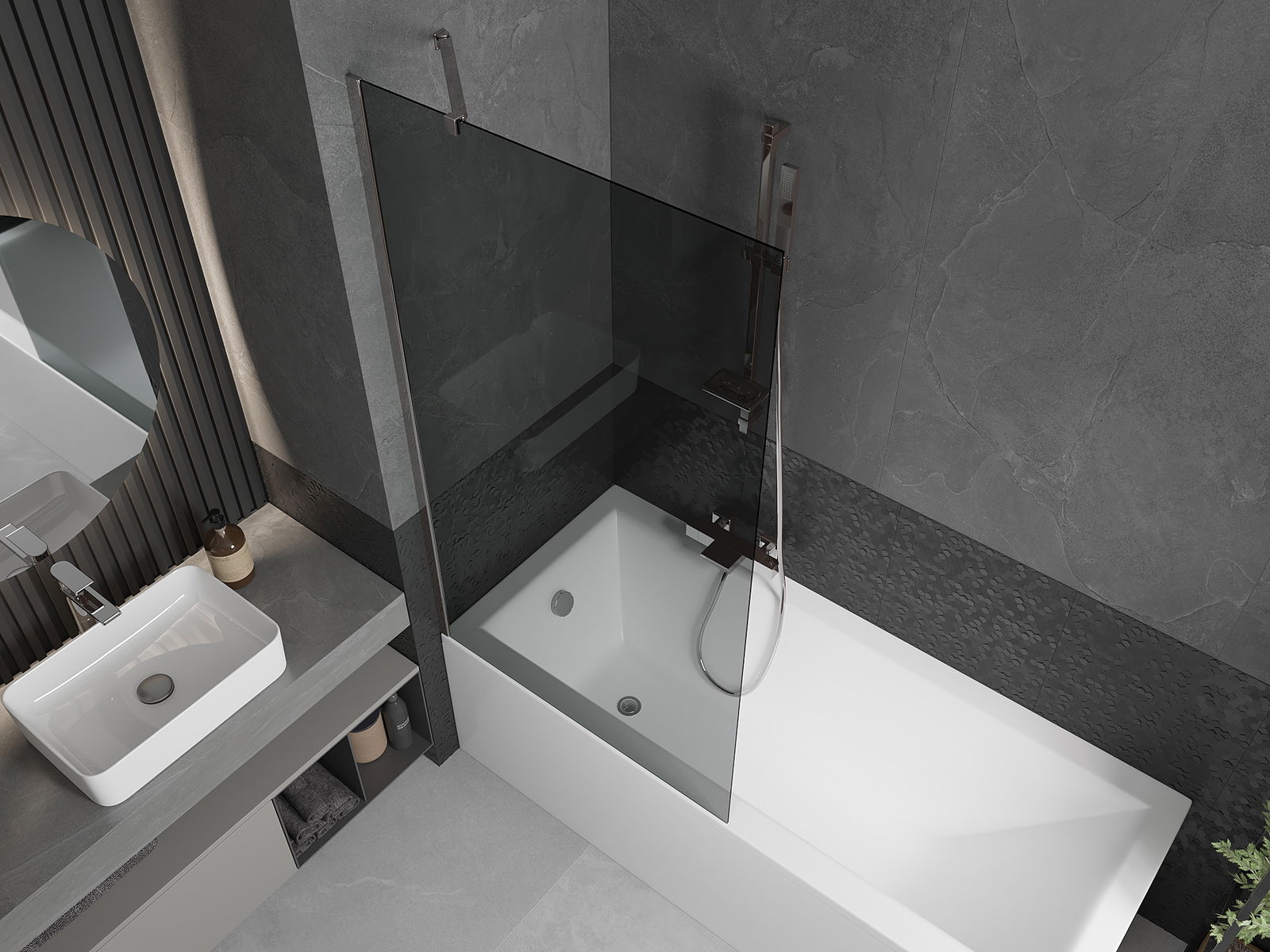 Effective protection against water spilling during bathing. The screen has seals that perfectly fit the glass surface and the edge of the bathtub. A functional solution ensuring safety and easy maintenance of cleanliness.