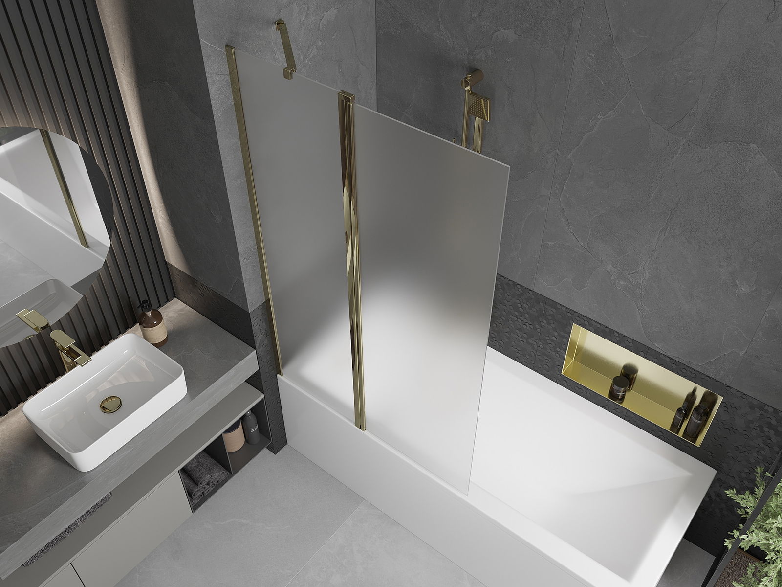 The screen has one movable wing that can be folded. This solution saves more space in the bathroom and allows free use of the remaining space when the bathing area is not in use.
