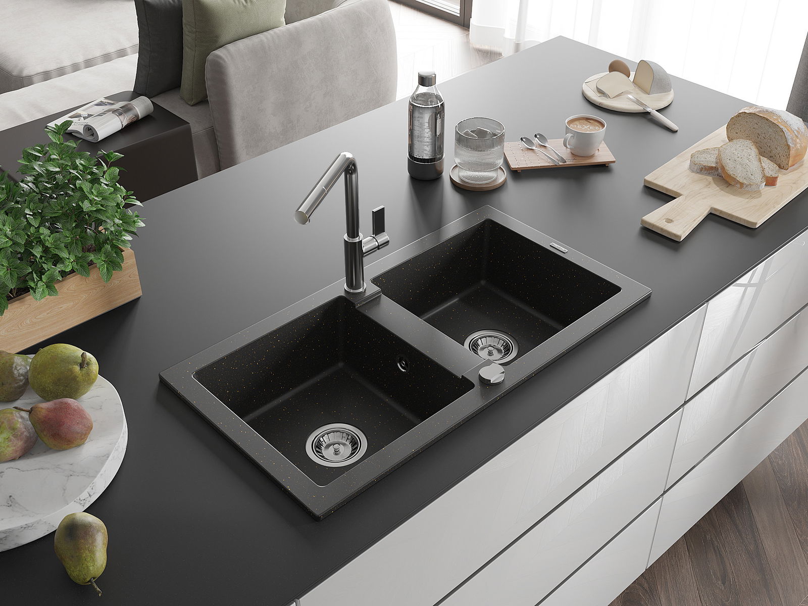 The sink is made from high-quality granite. It serves as an elegant and, above all, practical addition to any kitchen, regardless of its style. The high quality and durability of granite ensure many years of use.