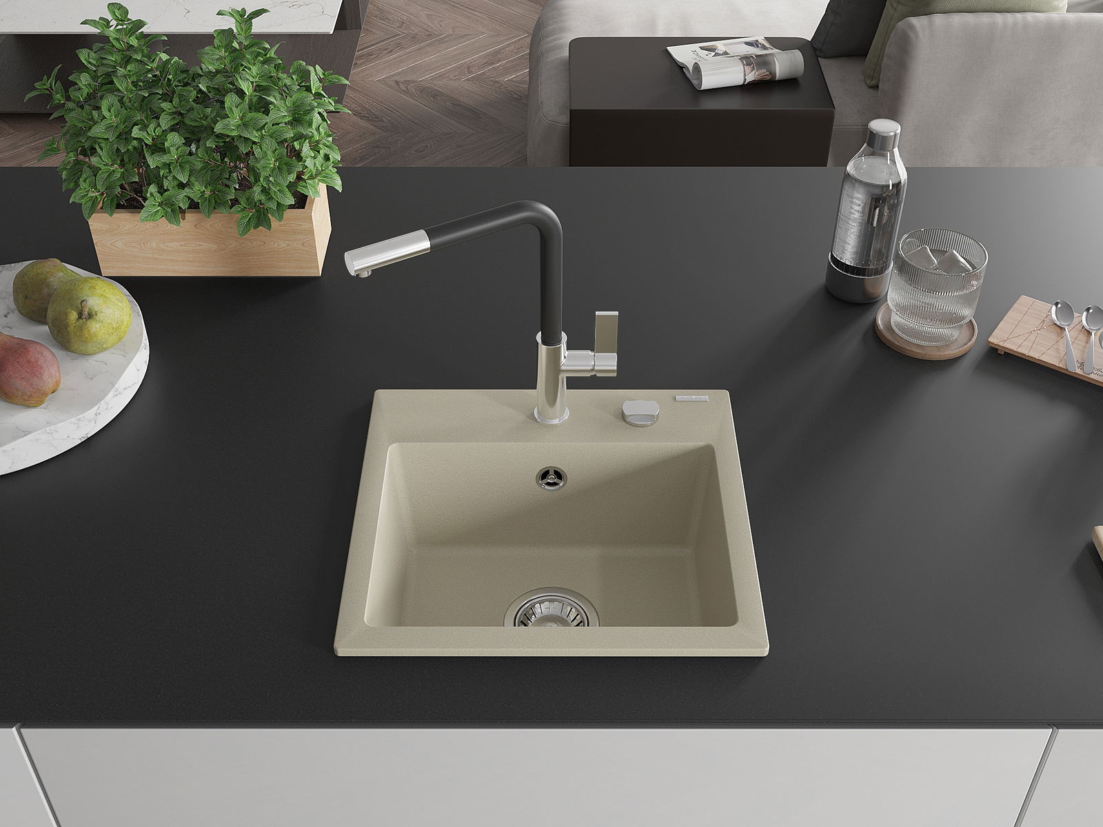 The sink is made from high-quality granite. It serves as an elegant and, above all, practical addition to any kitchen, regardless of its style. The high quality and durability of granite ensure many years of use.