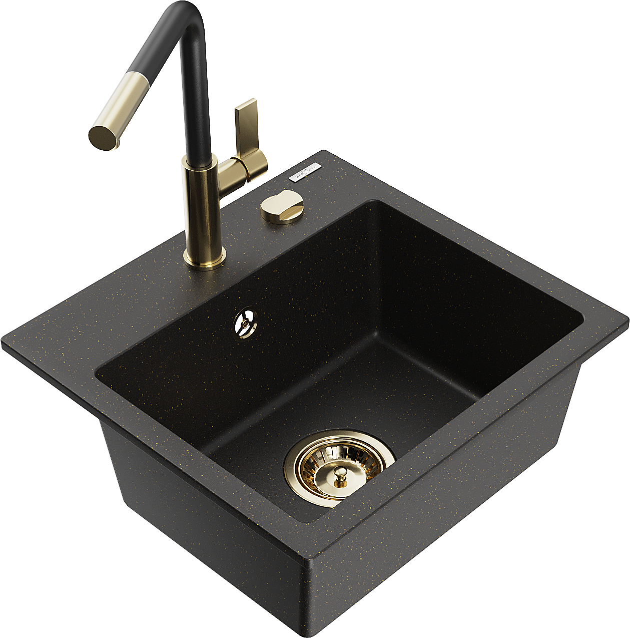 Mexen Milo granite sink single-bowl with Flora kitchen tap, black/gold metallic - 6505-75-670401-57-G